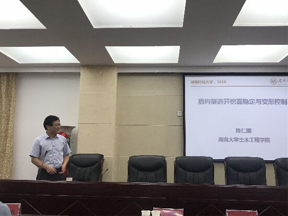 2018年6月15日下午14:30,湖南大学米乐mile官方网站院长陈仁朋教授应邀来我院,在土木楼201为全院师生作“盾构隧道开挖面稳定与变形控制”的专题报告。我院党委书记陈秋南主持本场讲座,相关专业师生到场聆听讲座。