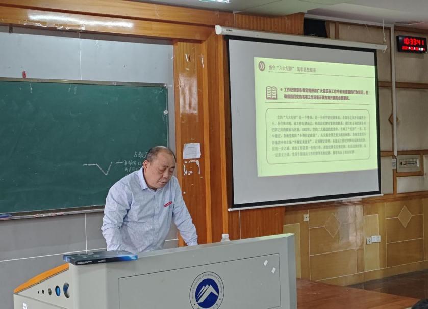 2024年6月6日,米乐mile官方网站党委书记万文以“恪守六大纪律,筑牢思想根基”为主题,在第五教学楼2-1教室为全院学生党员讲授专题纪律党课。