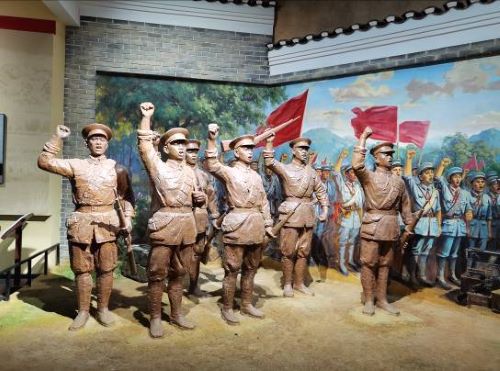 1928年6月,在南昌起义和秋收起义的感召下,彭德怀同志率国民革命军湖南陆军独立五师第一团和第三团三营在平江天岳书院发动了平江起义,有力地推动了湘鄂赣边界革命斗争的发展,也为创建湘鄂赣革命根据地奠定了基础。党员们怀着沉重的心情,看着一件件展览图片与物件,听着讲解员详尽的解说,内心中一次又一次受到强烈冲击和洗礼,深刻地感悟到只有共产党才能救中国的历史命题。