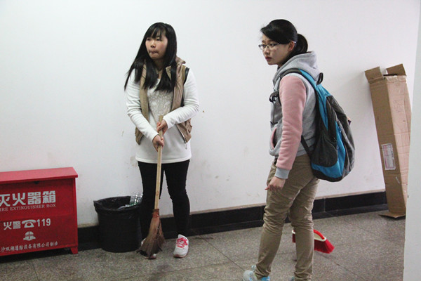 活动伊始,李宗武简明扼要的阐述了此次活动的内容及意义。随后,入党积极分子分为五组,由负责监督的预备党员分别带往土木楼的一到五层展开清理打扫活动。活动内容看似简单却繁琐,需要每个人的认真与细心。预备党员周密组织,积极参与,主动融入入党积极分子中间,亲切指导,不时指出他们工作的不足之处,并参与进去和他们一起打扫卫生。入党积极分子积极清理垃圾、消灭灰尘,不怕脏,不喊累,相互配合,积极行动。上午十点,活动结束,各小组顺利完成任务并通过检查。实践活动结束后,在土木楼正门前,党建办主任侯宇楠关于近两次的党课培训发表讲话,指出中间的问题,并希望在下午的培训中学员们能表现的更加出色。随后李宗武对本次活动作出总结,肯定了各小组的工作热情,并安排了关于考核的各项事宜。