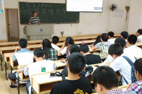 会议开始时,首先由易书记发表重要讲话,告诫同学们“人无信则不立”,诚信体现了一个国家、一个民族的品质,同时也是个人品质的优良体现,倡导同学们要诚信还贷,学会感恩。紧接着,主讲老师黄鹏通过幻灯片给大家详细地讲解了大学生贷款的主要知识,包括大学生毕业还款还息的主要流程,而且还讲解了大学生参加兵役后的还款注意事项。最后,黄老师着重讲解了感恩,用周边同学的事例来号召大家做一个有感恩之心的人,回报父母,回报学校,回报社会。