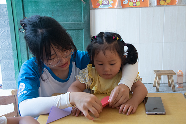 为落实感恩教育,培养孩子们的感恩意识,锻炼他们的耐心,提高他们的动手能力,7月12日上午,米乐mile官方网站三下乡暑期社会实践团开展了以“感恩“为主题的折纸教育课程,志愿者们以折纸为引例教导孩子们如何在生活小事中践行感恩之举,表达感激之情。