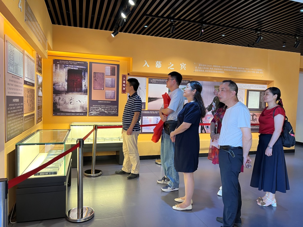 全体党员怀着敬仰之情参观了魏源故居,通过一段段历史文字、一张张珍贵图片和一件件实物,大家深入了解魏源从解经笺诗的通儒转而为关心水利盐漕的实干家、从忧时忧民的学者转而为放眼世界的先驱的历史生平,被他在鸦片战争败北、民族危机深重时“睁眼看世界”的真挚爱国主义情怀和难能可贵的开拓精神感染和激励。