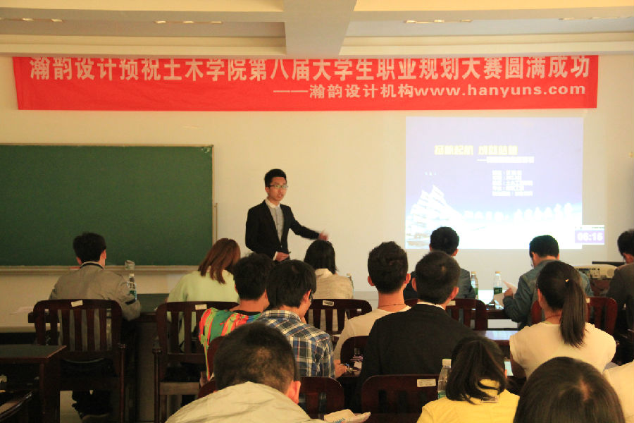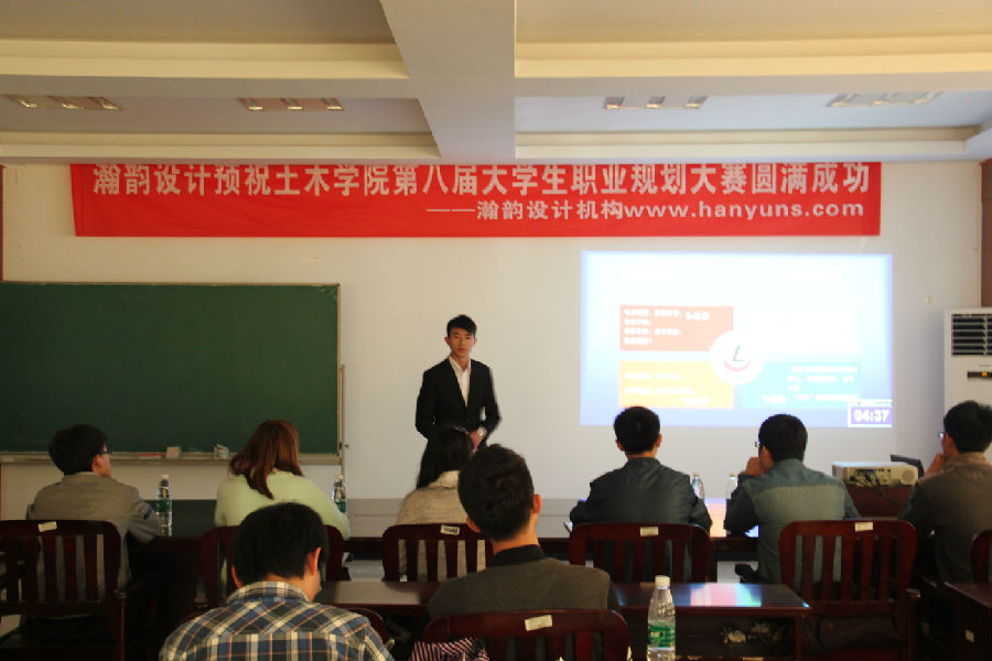 4月14日下午1点,我院第八届大学生职业规划大赛复赛在土木楼201顺利举行。就业部部长邱泓彬、就业部老副部丁梦宁以及2013年、2014年职业规划大赛决赛选手肖隆泳、李思飞、周裕洲、尹志伟担任本次评委,出席比赛现场的还有11级辅导员曾淑艳。本次比赛由院就业部主办,刘霞主持。