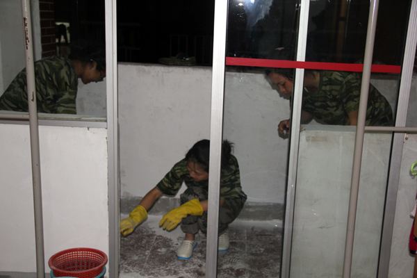 在接受内务整理的具体任务后(今晚主要目标是阳台和卫生间),新生们便风风火火地开始了自己的工作。面对高要求的内务整理,新生们没有畏惧,而是抱着一颗尽善尽美的心努力整理。在新生们整理期间,我院各部门的学生干部也纷纷下达寝室,不仅耐心指导,还亲自带头整理。这些学长学姐们满怀热情,工作认真负责,给新生做了表率的同时也与新生们打成了一片。