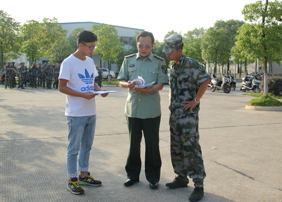 当响亮的口号回荡在训练场时,教官已来到同学们面前,当听到“军姿准备”时,上午的训练正式开始。今天的学习内容是正步,同学们有些激动,走正步,能体现军人的威武雄壮、体现军人排山倒海的气势和所向披靡的气概,显然,他们等待已久。看着教官的示范,同学们摩拳擦掌,亲身体会,才发现,存在许多问题,教官奇思妙想,只为同学们能有所进步。训练在进行着,期间,院党委副书记易贵元来到训练场地,对接下来的军训工作作出指导,强调同学们的寝室卫生,以及学生军训期间的请假情况,时间不要太长,珍惜短暂的军训时光,体会军训的意义。