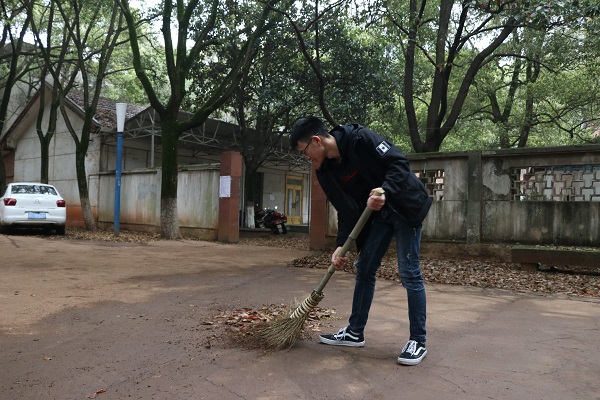 为提高此次活动的效率,志愿团工作者将参与活动的志愿者分成三个小组来进行学雷锋活动。一组的志愿者负责打扫家属院楼下的落叶,二组的志愿者负责打扫停车场旁的落叶,三组的志愿者负责将扫好的落叶清理到垃圾桶中。活动开始,志愿者们都热情高涨地奔赴自己所要清理的区域。负责打扫落叶的志愿者将地面上的落叶扫成堆,一次又一次地弯腰把地上较大的树枝单独捡起来处理。接着,负责清理的另一组的志愿者将扫好的落叶清理到垃圾桶里。在一个多小时的活动中,大家都未曾停下过一刻,整个过程中大家恪尽职守。在活动结束的时候,参与学雷锋活动的志愿者们进行了珍贵的合照留念。