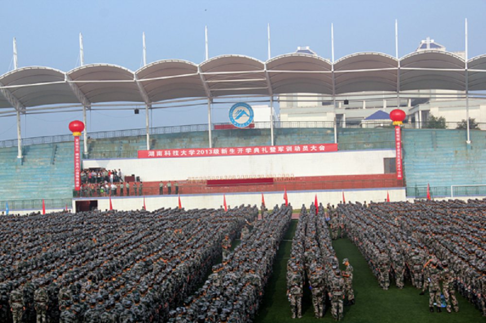 早上六点半,尽管距大会正式开始还有两个小时的时间,但我院全体13级新生和教官都早已在北校旧篮球场集合完毕,在教官们的指挥下,各排有序地进行了军训前的准备工作。大会于8:30在新田径场正式开始,校党委书记田银华主持会议,大会第一项全体肃立,奏国歌升国旗。接下来校长刘德顺发表了重要讲话,他对新生的到来表示了热烈的欢迎,并对学校的基本概况做了简单的介绍,同时,他还为新生诠释了校训“唯实惟新,至诚致志”的深刻内涵,并告诫同学们要珍惜大学时光,利用在大学的时间努力学习。他指出我们的大学生要敢当责任,勇当责任,要有远大理想,养成独立的人格,强调大学生活是人生的重点章节,要努力奋斗去实现人生的理想,强调进入大学要走出自我融入集体。接下来分别是在校学生代表、研究生代表、13级新生代表及教官代表发言,之后军训教官在现场进行了表演,他们的精彩演出赢得了现场的阵阵掌声。