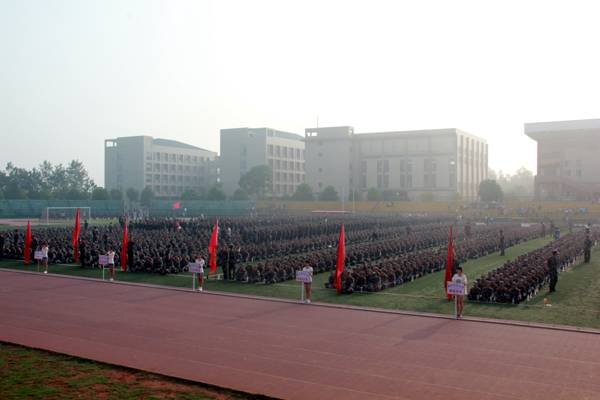 9月8日清晨,迎着微微的晨曦,我院13级全体新生身着鲜艳的迷彩服,在北校田径场参加了2013级新生开学典礼暨军训动员大会。