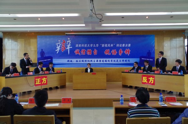 为了贯彻国家税务总局制定的指导思想,使大学生更全面的了解国家税收政策,增强纳税意识。4月28日下午两点,由湘潭市九华经济区地方税务局、湘潭市九华经济区国家税务局联合米乐官网团委主办的“九华新税风杯”辩论赛决赛在学术交流中心五楼举行。本次辩论赛由米乐官网团委学生会和米乐官网辩论协会承办。