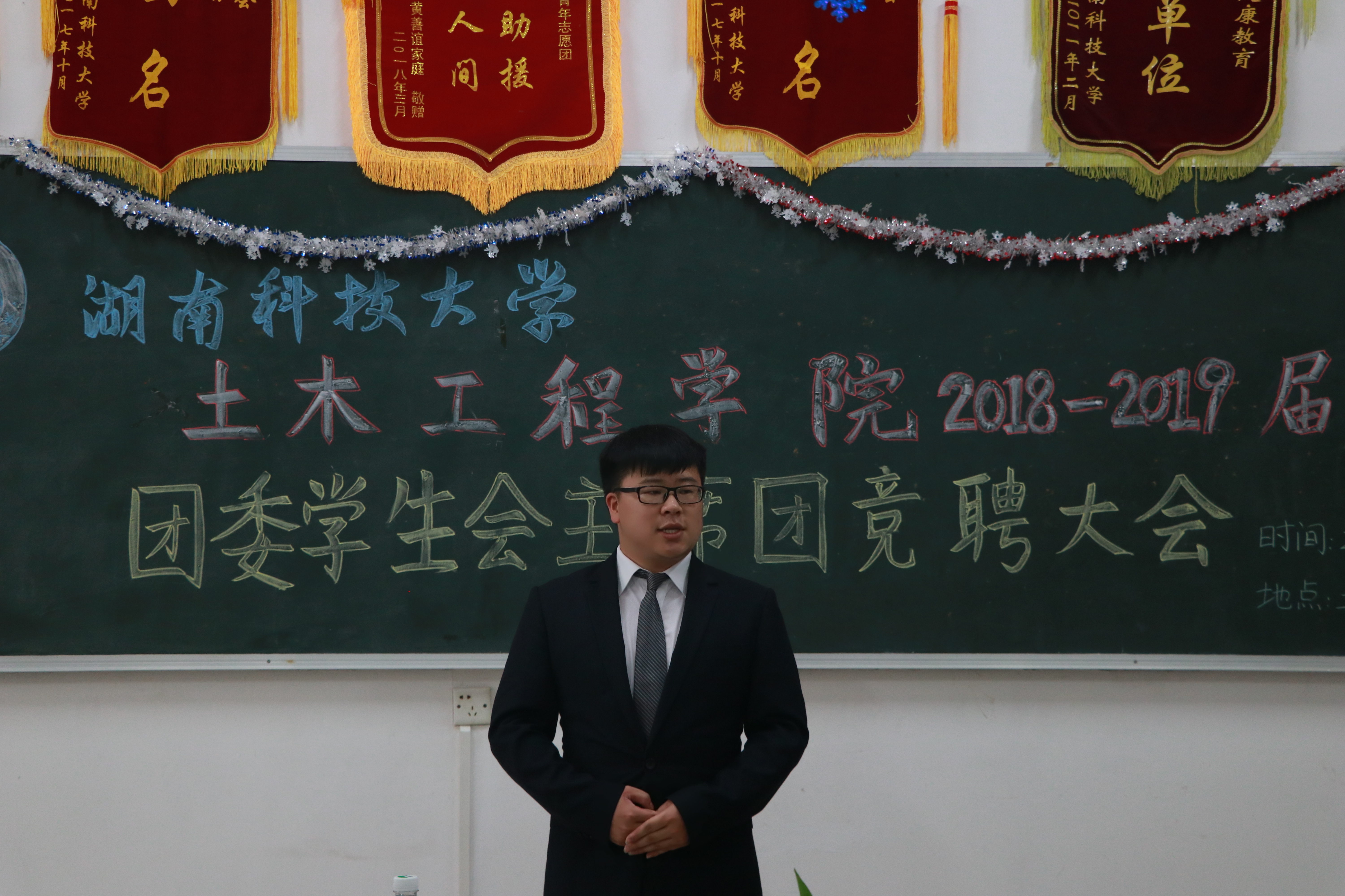 5月18日15:00,我院2018-2019届团委学生会主席团竞聘大会于土木楼236正式召开。出席此次会议的有院学工办主任虢利钢、就业妈妈曾淑艳、勤工资助负责人杨钋平、党建办负责人曾竞兴、15级辅导员罗佳、16级辅导员肖鹏飞、17级辅导员刘星以及主席团全体成员。团委第一副书记邓婉珍主持本次会议。