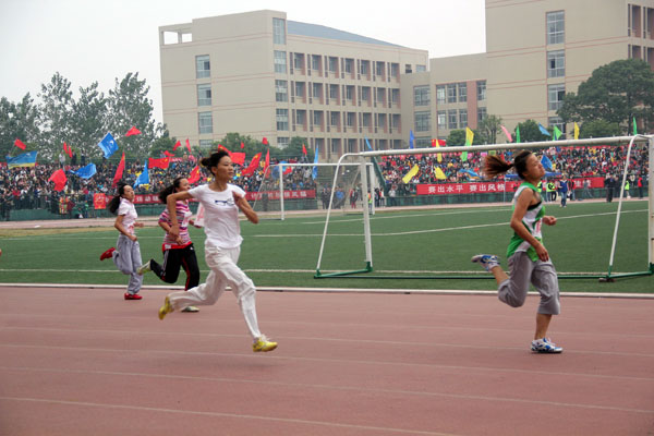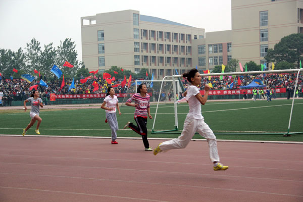 随着一声枪响,运动健儿们便犹如离弦了的箭一般冲出跑道。第一圈,跑道在李群杰的脚下飞快的后退,她一口气超越了前面两位运动员,并紧跟着前面的0534号健儿,进入了第二队。看台上,鼓声、欢呼一片、彩旗飞舞,科大的学子都在竭力为自己的学院加油助威。第三圈开始,李群杰更加加快步伐。此时,其他健儿们也在你追我赶,难舍难分。当比赛进入到尾声时,李群杰显然有些体力不支了,步伐迈动的节奏也变得慢了下来。最终又被后面的两位健儿超越,即便局势已然明显,但李群杰仍然坚持不放弃地跑完了全程。