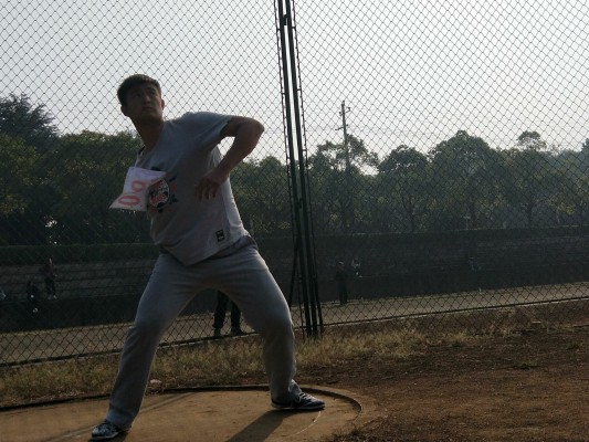 10月27日上午8:40,初阳和煦,令人瞩目的男子铁饼预决赛于第二田径场拉开了帷幕。50名参赛选手热情高涨,早早来到场地,静候比赛的开始。我院选手马佳南,杜景勃,范文杰也已整装待发。