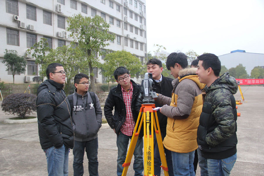 为考察路桥专业学生对道勘设计要点的理解以及对道勘所用测量仪器的掌握程度,培养其实际操作能力和创新能力,我院于12月22日11:00在逸夫楼旁平地举行了第三届“湘潭路桥杯”道勘实习技能操作比赛。校教务处副处长陈秋南,主任梁小玲,我院副院长谢献忠,路桥系主任马缤辉以及贺洁,陈炳初,贺成斌,王齐仁,唐旭光,肖思群等老师到场观赛,土木学院和潇湘学院13级路桥系学生参加了此次比赛。