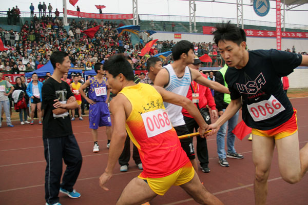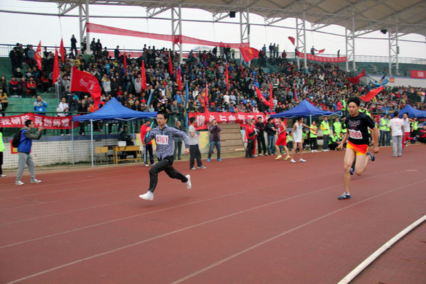 10月18日上午11点,米乐官网2013年秋季运动会田径男子组4x100米、女子组4x100米接力赛在北校新田径场进行。其中我院女子代表队获得第六名,男子代表队获得第八名的好成绩。
