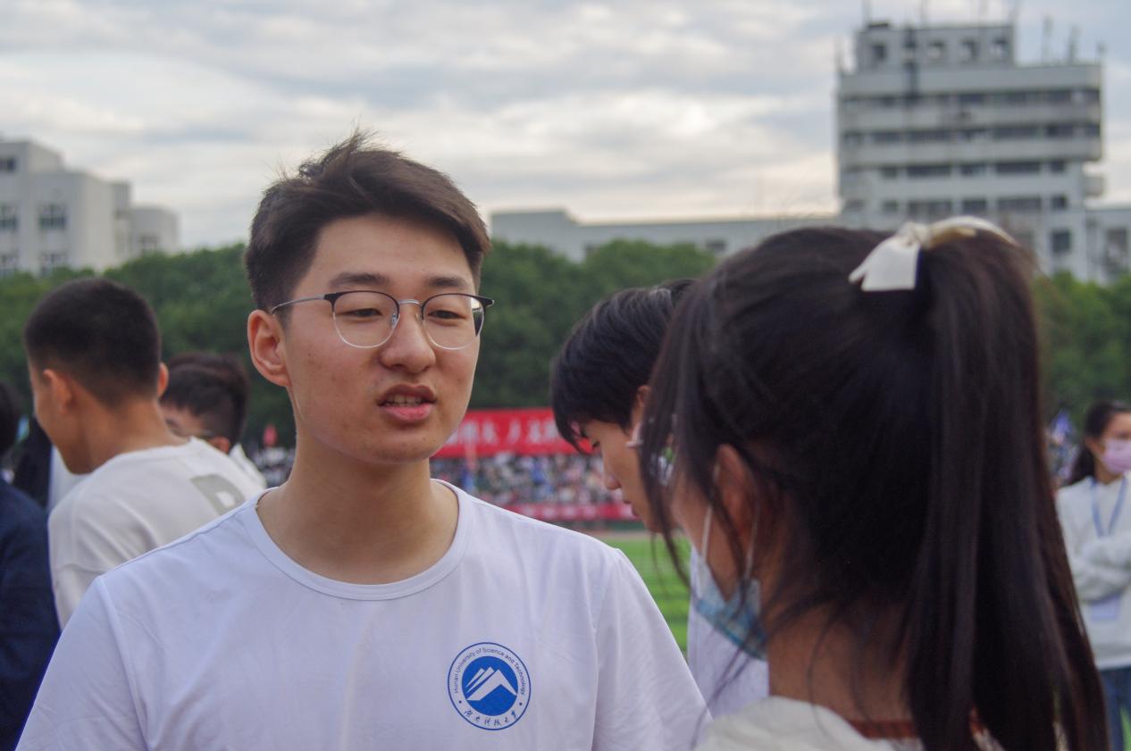 在比赛前,选手们都在进行着简单的热身准备,随着裁判员手中的红白旗落下,他们便飞奔而出,一个简单的跨越便轻轻松松地越过了横杆。最终我院研一的学子王奕霖闯进决赛,在紧张的比赛氛围作用下,最终因为失误导致他前两次尝试未能过杆,但他并没有放弃,第三次尝试越过了横杆最终也取得了不错的成绩。对于本次的比赛历程他如此说道:“我想为米乐mile官方网站争光,也想锻炼自己。但是我一般跳之前都会跑很长一段,但是现在的跳高场地太小而且草坪与跳高平台不在同一个平面,导致我不习惯这种起跳方式。”从他的回答中看得出他很喜欢跳高,想取得一个好的名次。在他身上不仅体现了我院学子永不言弃的体育精神,更彰显了土木学子坚韧的毅力。虽然他对自己的成绩并不是很满意,但他表明已经尽力了,没有遗憾。