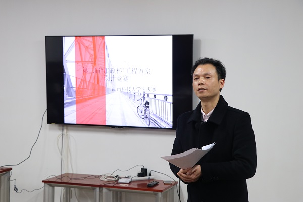 11月13日19:00,我院和建筑与艺术设计学院共同举办的“木兰大道及接线工程方案”市政杯选拔赛决赛,在米乐官网立德楼211会议室举行。校团委书记马斌辉、建筑与艺术设计学院副院长余翰武、我院副院长汪建群、学工办主任虢利钢以及聂忆华、陈炳初等8位嘉宾担任评委老师。本次会议由虢利钢主持。