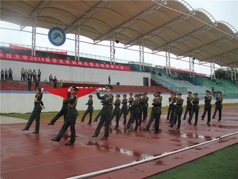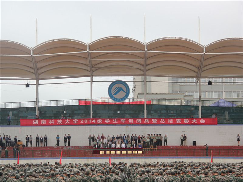 9月21日上午八点半,刚下完小雨,室外气温骤降,但是丝毫不能影响大家的激情。湖南科技大学于北校新田径场进行了14级学生军训阅兵暨总结表彰大会。