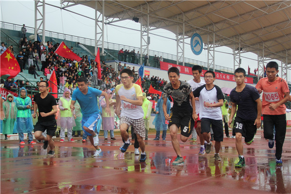 天空乌云密布,下着蒙蒙细雨,却不能阻挡住运动员们的奔跑。一声枪响,运动员们像一支支离弦的箭,纷纷飞向渴望已久的终点。一圈过后,运动员们体能有所下降,但是疲惫却没有战胜运动员们内心的坚持。终点就在眼前,运动员们用尽最后一丝力气,加速,加速,再加速,直到他们冲过终点。冲过终点之后,他们有的晕了,有的甚至摔倒了。但,那有怎样,他们依旧是最棒的,因为他们坚持信念,他们战胜了自我,他们应为自己骄傲。