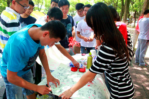 白云当空,艳阳高照,前往美食城的路上人山人海。此次活动以照片宣传,学生联合签名等方式来加强米乐官网学生诚信教育,提高学生的诚信素质,增强学生的诚信意识。签了名的同学还可以获得可口的小零食,这些别出心裁的方式使在场的同学和老师,及路过的行人积极地参与到其中。场面热闹无比。