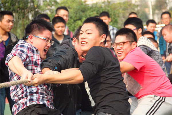 此次大赛,每个班级都派出了本班最强悍的能手,从每一个志气高扬的脸上都能看得出他们那一份必胜的决心,让人感觉似乎空气都在为之振动。天气没有以前那么冷,选手们就脱掉了他们身披着的大衣,开始做赛前准备。助威的同学很多,使得赛场氛围十分激烈。当比赛开始的哨声响起,选手们全都紧握绳子,两腿斜向后倾,重心后压,憋足了劲把绳子往后拉。各班同学在旁边为自己班级加油呐喊着。每个人都恨不得抓起那僵持已久的绳子和赛手们共同做战,一起努力。只见两边队友都竭力撕喊着''一二,一二'',不到一分钟,这场力量的较量就结束了。最终,大一的勘察工程三班、建筑工程一班、工程力学二班,大三的资源勘查一班、工程管理一班、道路桥梁三班获得了比赛胜利。
