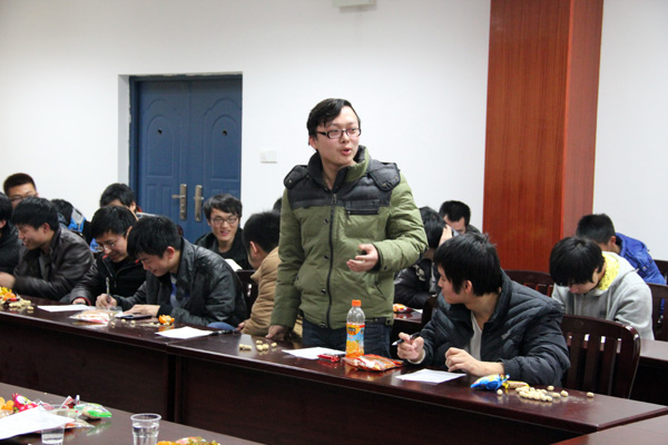 12月19日晚上六点半 ,由11级辅导员曾淑艳老师组织的”11级学生迎新年座谈会”在土木楼301温情展开。我院院长钟新谷,书记易贵元出席了座谈会并与大家亲切交流。会场布置非常温馨,有食品和茶水供学生及老师享用,这也反映出此次座谈会是以“面对面谈心”为目的的。