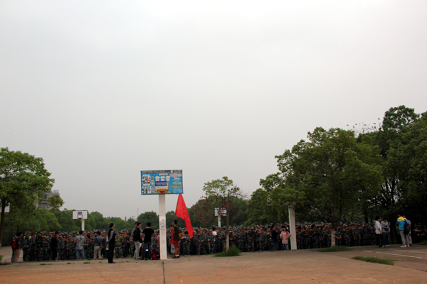 2013年9月8日晚7时,我院全体大一新生在北校旧篮球场举行了军训教官见面会。全体新生身着统一的军训服,英姿飒爽,在助班蹲点的带领下迅速按照身高排好了队伍,等待着教官们的到来。