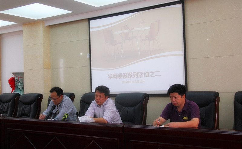 首先是副书记易贵元讲话,他说道学风是学生思想道德品质、学习精神与综合素质的重要体现,是学生成长的基础和前提,是凝聚在教与学过程中的精神动力、态度作风、方法措施,也是学生健康成长的基石。所以他要求参加座谈会的每一个同学对于自己挂科的原因进行分析,并下定决心在接下来的学习生活中会更加努力,做一个对得起自己,对得起父母的大学生。经过近一小时的发言,书记祝明桥发表讲话,他总结了大部分同学都是课前没做到认真预习、上课不专心听讲,课后不主动复习;而少部分是自己的学习方法不对,对于此类同学要积极与老师交流,找到适合自己的学习方法。接着是院长钟新谷讲话,他提到挂科是同学们意志力薄弱,抵抗不了诱惑,晚上熬夜聊天看电影打游戏,白天没有精力上课。最后是副书记易贵元总结发言,此次会议的目的在于让大家有建立良好学风的主人公意识,将大方面的号召具体到切身行动中去,充分调动大家的积极性。不断激发学习的积极性和主动性,培养出更多更高水平、高素质的人才。