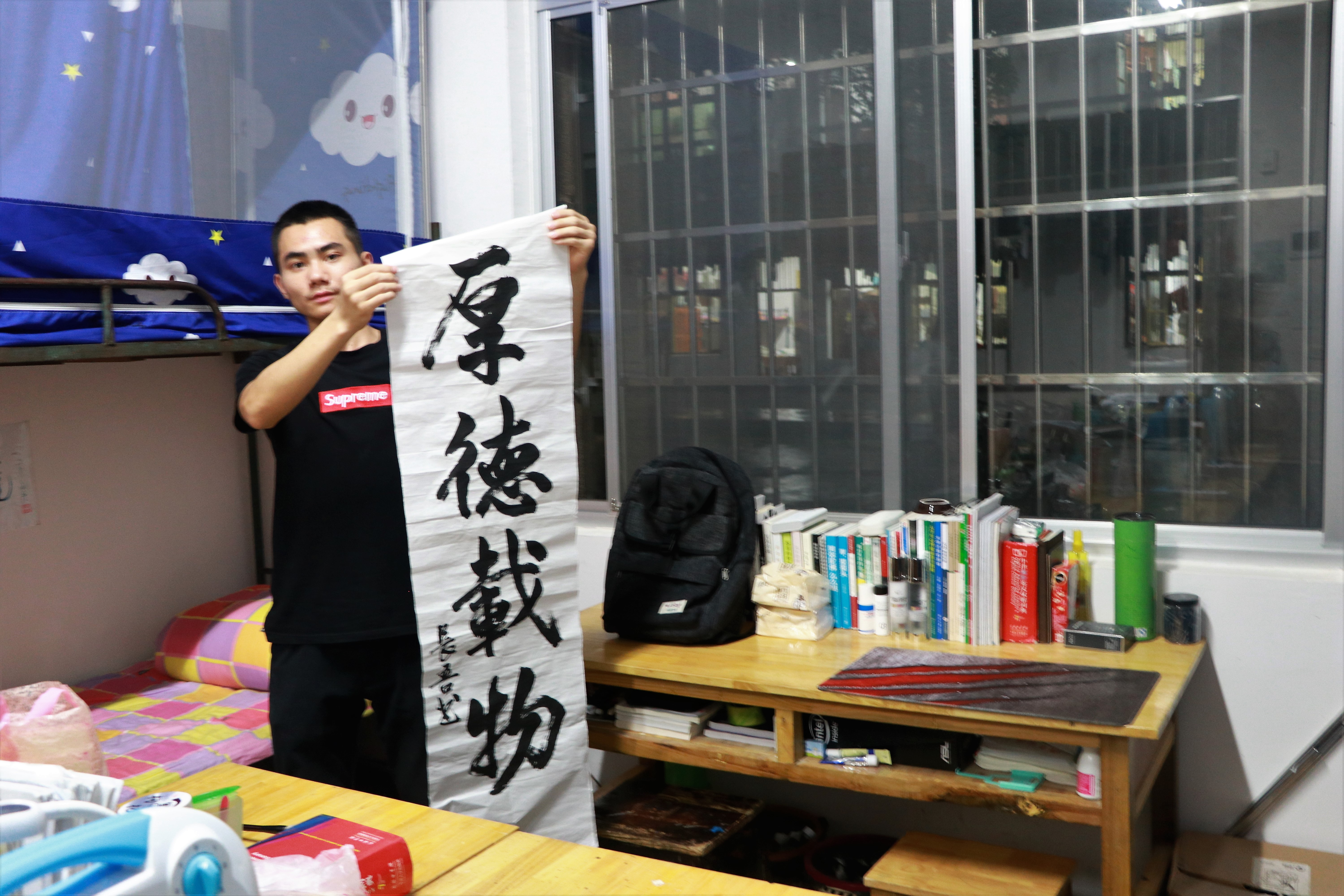 首先来到男生寝室,有的寝室挂满了各国国旗,看得出他们都是“世界杯”的狂热爱好者,希望他们在学习上也能如“世界杯”上各国球队一般你追我赶;有的寝室贴满了标语,以此来激励室友们好好学习;有的寝室装上了地板革,挂上了床帘,这使寝室变得更加温馨,更加富有家的气息;有的寝室有乐器、有健身器材、有打印机......麻雀虽小却五脏俱全,这无不透露出男生们对生活的精致要求。然后是女生寝室,贴心的寝室公约、干净整洁的书桌、温馨的照片墙、各类玩偶挂饰等等,都透露出女生们粉嫩嫩的少女心。相同的是每一间寝室都张贴了安全温馨提示,提醒同学们寝室安全的重要性。