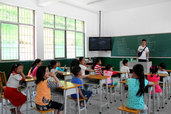 志愿者在今日上午对孩子们进行了学习辅导之后,再次和孩子们进行了交流。首先,志愿者们在教室里向孩子们教授了《义勇军进行曲》、《小苹果》,目的是向孩子们传递些欢乐,增加他们的课后娱乐内容。随后,志愿者们分别向孩子们介绍了自己,并且鼓励他们主动上台做自我介绍。在孩子们做自我介绍时,有的孩子开朗、大方,但有的因为平时很少和其他人交流而胆怯害羞。志愿者们决定,用奖品奖励的方法鼓励他们大胆主动上台自我介绍。由于志愿者的鼓励和支持,孩子们都大胆的上台自我介绍,那些害羞的孩子也鼓起勇气迈出了勇敢的一步。