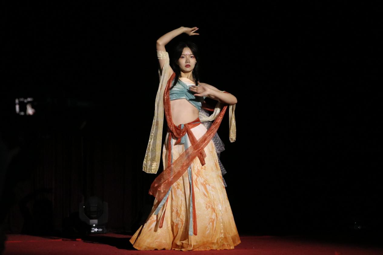 伊始,王艳为才艺赛致开幕词,她希望土木学子不仅要抓文化成绩也要在文娱活动上发光发热,将有限的时间投入提升自己的无限可能中。接着,祝明桥宣布才艺赛正式开始。经过初赛的激烈角逐,十二个队伍脱颖而出,本次活动他们更是准备了歌曲、舞蹈、小品、器乐等精彩绝伦的表演。郭甘霖、林宇欣演唱的歌曲《违背的青春》和张蔚锦、陈静宜、简南生、赖杰曦合唱的《简单爱》深入人心。舞蹈队带来的舞蹈《魂》结合了敦煌元素,引人入胜。丁楠饰演的敦煌仙女登上舞台,一束光聚焦在她身上,充分展现出敦煌壁画的美,赢得满堂喝彩。赵卓毅和韦晓宇合作了舞蹈《pop beat》,B-Box的节奏配合有力地舞动,吸引着观众的眼球。
