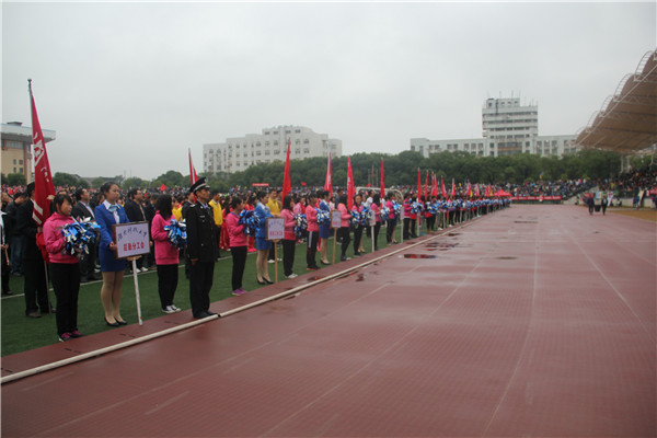 伴着丝丝细雨,早7点半,全体新生在新田径场内集合完毕。在国旗手庄严地护送国旗入场后,运动员和裁判以及来自各个学院的方阵队依次入场,我院方阵队步伐整齐,气势恢宏,赢得观众们阵阵掌声。