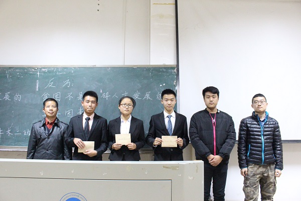 本次辩论赛的主题是“贫困是否为阻碍人才发展的重要因素。”比赛的正反方队伍分别来自土木工程二班和土木工程七班。在两位主持人幽默的谈话过后,比赛也正式拉开了帷幕,辩论主席谭小旭详细的讲述了比赛的流程和规则。首先,由正反双方的一辩详细的陈述了各自的观点。接着进入双方二辩精彩的质问阶段,一轮的质问环节过后,场上的气氛也开始升温。经过前面几个环节小试牛刀之后,观众对正方双方的观点也已了解。比赛开始进入到最激动人心的自由辩论环节。双方辩手锋芒毕露,妙语连珠。虽说是自由辩论,但正方始终围绕着物质这个方面论证自己的观点;而反方则将论题转变成“是否消磨学习的意志”展开论证。选手们的精彩表现引得台下一片掌声。最后由双方四辩选手做最后总结,辩论环节告一段落。
