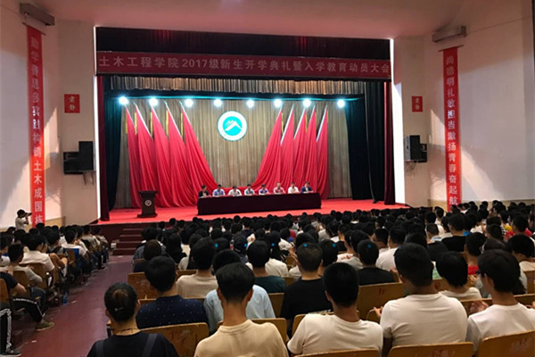 会议伊始,全体师生起立奏唱国歌。国歌演奏结束后,祝明桥院长表示欢迎所有17级新生的到来,为土木学院又增添了一笔新的光彩。他在向17级新生介绍我院历史以及现况的同时,展示了我院强大的师资力量。随后,陈秋南书记指出了大学生活与高中生活的不同,希望新生们能够尽快适应,投入最好的精神状态中去,他说:“大学生除了学习之外,更重要的是学会做人。” 陈秋南书记表示希望同学们能够珍惜时光,立足自己,做一名仰望星空的大学生。紧接着,张鹄志老师发表了他的个人观点:每个大学生都是一颗幼苗,只要用心浇灌,最后都会长成参天大树,希望17级新生在土木学院的培养下能够茁壮成长。大会最后,新生代表毛莹上台演讲,她励志做祖国栋梁,为祖国效力,希望同学们勿忘初心,坚持最初的理想。