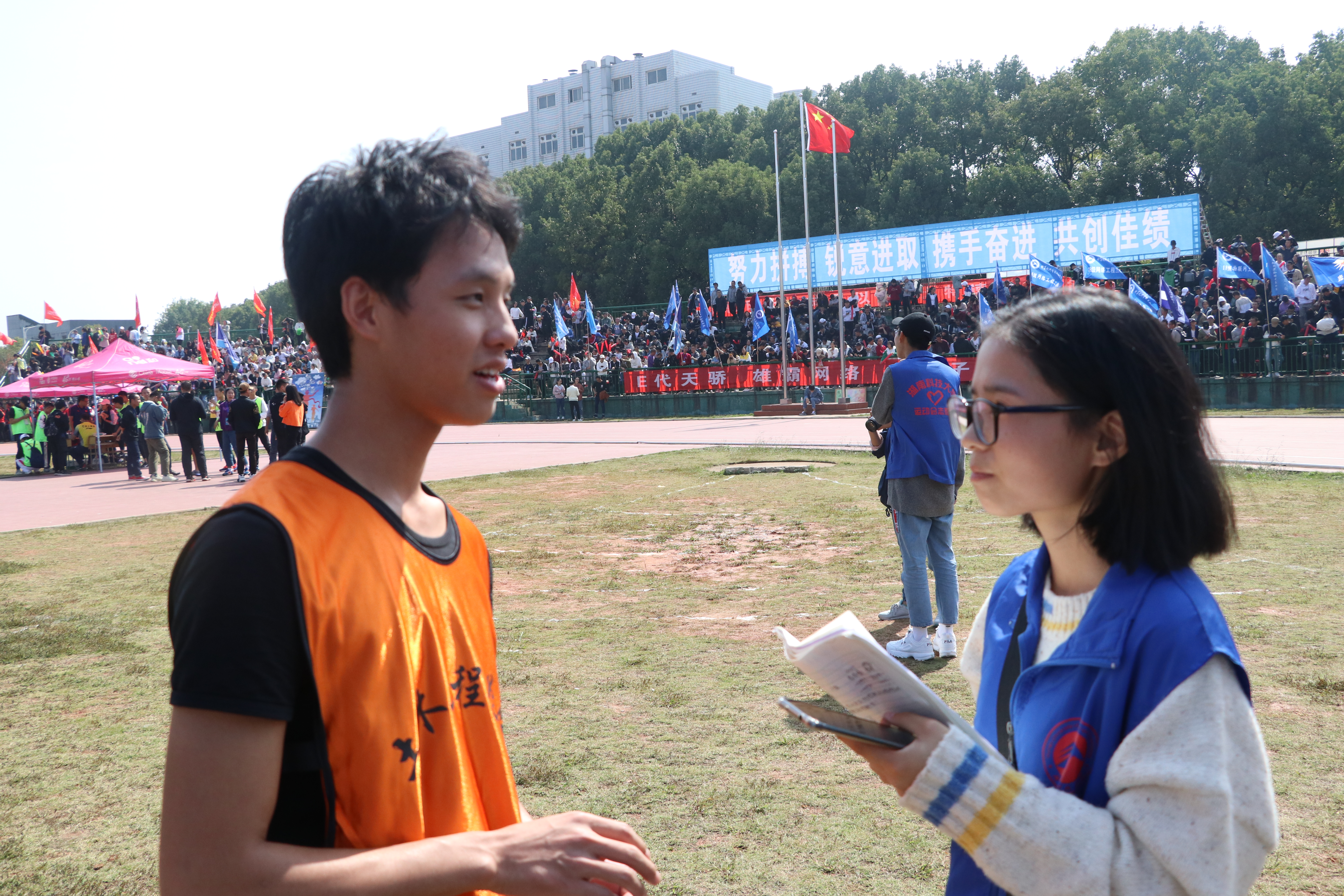 开赛前,我院运动员易清曦在采访时表示赛前心情紧张,对手很强,自己很重视这次的比赛。比赛开始后,运动员依次进入赛道。我院运动员杨钦凇一面蹲下做好跑步姿势,十指用力撑住地面,臀部紧贴脚后跟,一面快速偏头向后看,焦急地等待交接棒的传递。随后,枪声响起,易清曦飞奔出去。因为有以前积攒的经验,他对自己起跑有着很大的信心。“接力赛第一棒最难的就是起跑。怕反应慢了又怕抢拍。”而丰富的经验,让他在高度紧张的情况下仍然稳定发挥。交接棒时,易清曦减速,一手持接力棒,一手扶住杨钦淞的手臂,以保持稳定。默契的配合及稳定的发挥,使得交接过程进行的有条不紊。胡雅理紧握带着希望的接力棒,进行着最后的冲刺。尽管暂时落后,他依然尽力地大步向前,一路直冲。最后超越第二,冲刺终点!比赛结束后,在谈到半个月努力换来的收获时,易清曦显得十分愉悦。“只有你肯努力,每天傍晚抽出时间坚持训练,一定会有好成绩的!”他相信,运动精神在于奋斗与拼搏!