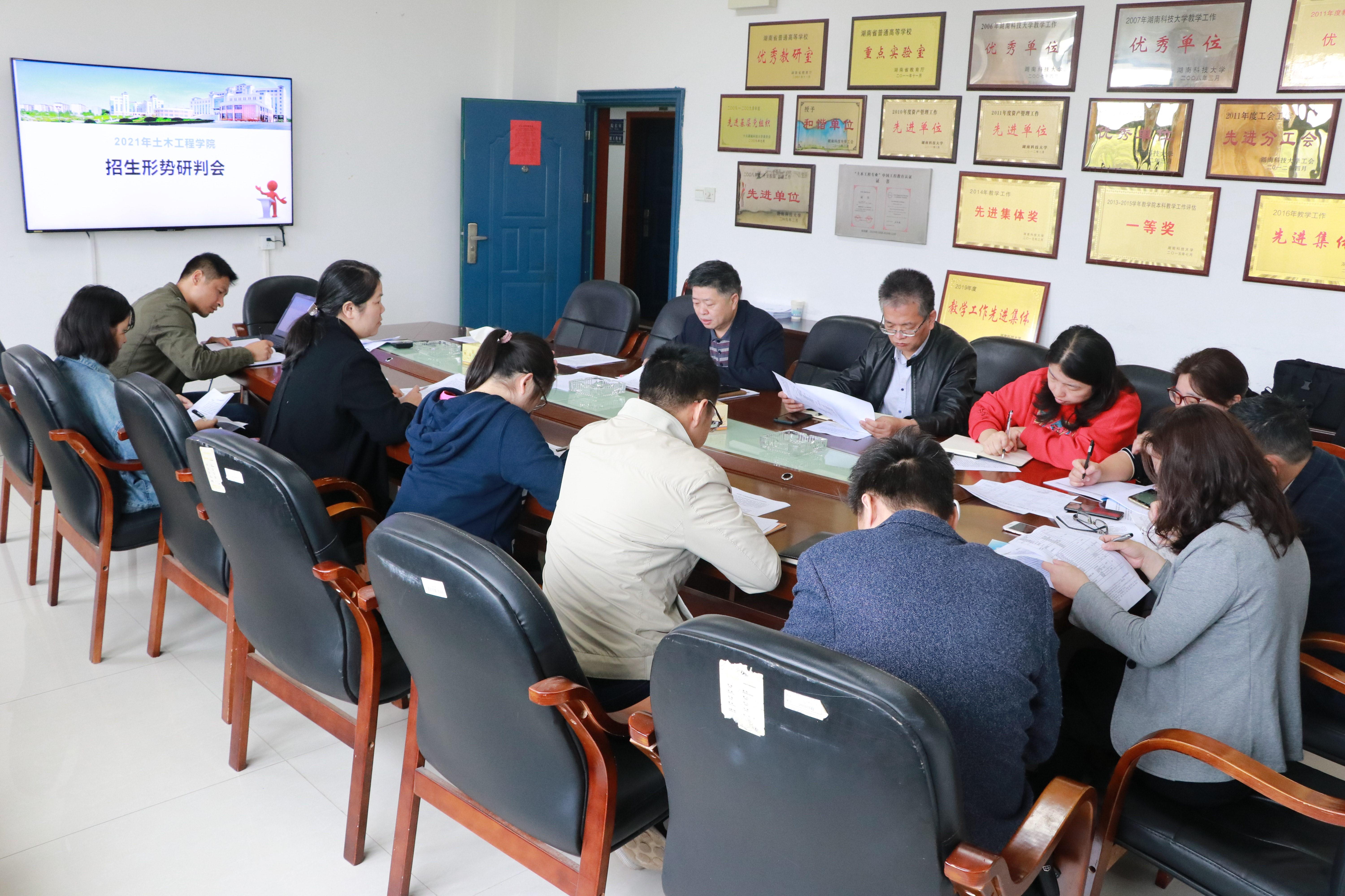 为落实学校工作部署,应对2021年招生工作。4月23日,我院于土木楼214召开招生研判会。院党委书记陈秋南、院长祝明桥、院党委副书记王艳以及各系主任等负责人出席本次大会。