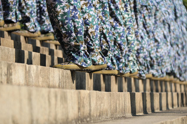 “齐步走!一二一、一二一!立正!”尽管赤日当空,但新生们热情不减,精神抖擞地参与到训练当中,一遍又一遍地练习新学的动作,站军姿、齐步走、敬礼、摆臂……在教官的一一指正下,开始渐入佳境,将这些动作刻入骨子里,汗水一滴一滴地打在地上,是他们每个人的艰辛与坚持的见证。与此同时,由各排精英组成的方阵队也开启了他们的正式训练。台阶军姿是他们的第一课,这是为了训练队员将重心前移后,增强身体的稳定性,同时也锻炼队员的腿部力量,让他们体会由腿部到全身的发力特点,为以后的训练打下良好的基础。“兄弟!加油!”,顶着炎炎烈日,正在站台阶军姿的他们互相鼓励、呐喊助威,为同伴打气的同时,也是在为自己鼓劲,他们脸上的汗水也在阳光的照耀下折射出耀眼的光芒。