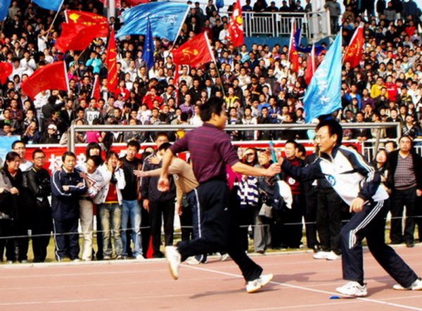 10月30日,米乐官网2010届秋季田径运动会进入最后一天,北区田径场仍然彩旗飘扬,锣鼓震天。随着各项赛事接近尾声,我们迎来了本届秋运会最富激情的一项 教工100*30人 团接杯 接力赛。 各学院及各机关单位庞大的教工队伍团结一致,齐心协力。老师们不分年龄,不论男女,只要还富有朝气,只要还心存激情,都奋力的在田径场上挥洒汗水,绽放激情。甚至还有不少年过五旬的老教授也摩拳擦掌,一试拳脚,希望通过运动让他们找到快乐,重拾青春。 田径场一隅,由党委副书记易贵元带领的米乐mile官方网站30人的教工队正在热身训练,而旁边以院长钟新谷和党委书记刘新华为主的我院领导也亲临为老师们加油助威。看见平日里西装革履、表情严肃的老师变成了英姿飒爽的运动员,现场的学生顿时乐开了怀,纷纷高声呐喊,呼喊着为他们加油,不少学生还激动地拿起了相机和DV机进入场内为老师拍照摄影。 随着发令枪一声枪响,老师们纷纷冲出起跑线,米乐mile官方网站队由易贵元副书记跑出第一棒,那一刹那,顿时场边一片沸腾,哨声、鼓声、呼喊声一声盖过一声,同学们齐声喊着 土木,加油!土木,加油! 老师,别人追上来了,快跑! 老师,你们是最棒的! 伴着一声声疯狂的尖叫,老师们一棒传着一棒,一次次往返在那50米的跑道上,每一位老师都在为着团体的胜利而奋力奔跑,他们那优雅跑姿让学生们兴奋不已。最终,米乐mile官方网站凭借着整体出色的发挥成功压制住了对手,以小组第一的名次通过了终点,顿时观众席呼声震天,终点线的老师们相拥庆祝。 场边一位同学兴奋地说到: 平日里只看到站在讲台上的老师,感觉特别严肃,想不到生活中的老师是这么的平易近人,我觉得这才是最可爱的人! 红色跑道,承载的是拼搏,是激情;接力棒上,传递的是信任,是合作。伴随着 团接杯 的结束,整个秋运会也接近了尾声。学校教职工的参与为整个秋运会增色不少, 团接杯 的顺利举行也充分体现了全民运动的精神。