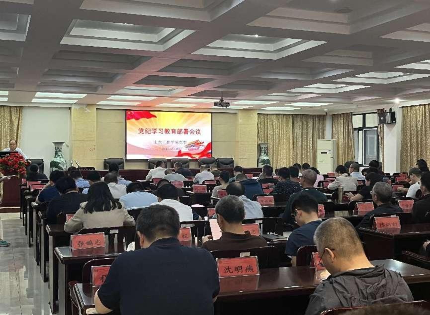 4月16日下午,院党委在土木楼201会议室召开会议部署学院党纪学习教育工作。全体院领导、各党支部书记、部分党员代表参会。院党委书记万文主持会议。