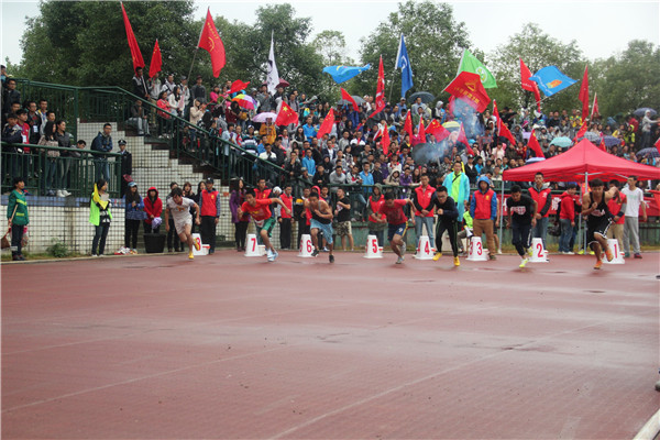 天空很阴沉,略带着丝丝寒意的空气,好像要刺穿每个人的皮肤。但怎么敌得过运动场上的激情四射。当欢呼声、呐喊声将冷空气驱逐开来,运动员们已经迫不及待的要在跑到上展示着火一样的热情和风采。我院短跑健将张文祥身着“一身蓝”,目光坚定,面容带严肃与其他选手做完准备动作之后,只等那一声枪响。啪!只见张文祥身子一抬,右脚用力一蹬,就像离弦的箭一样冲了出去。与此同时,欢呼声随着观众手中的旗子一起飘动,整个赛场一片沸腾。张文祥在观众的加油声中加速,保持,冲刺,迅速冲向终点。
