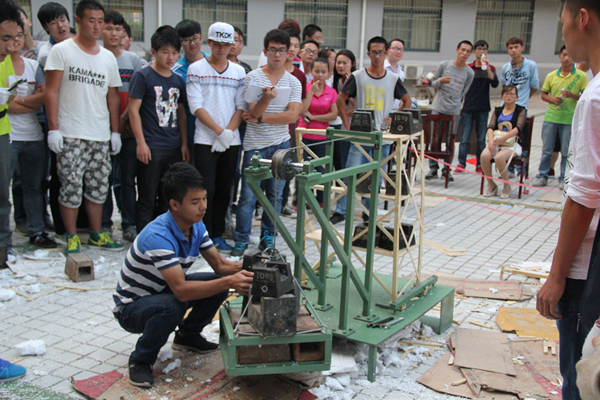 比赛在热烈的掌声中拉开序幕,参赛者带上自己的作品,经过简短的介绍后,由学生会科协组成的工作人员对作品进行测量、称重以及加载。每一个作品的称重及加载的结果都牵动着现场所有观众的心,作品加载后的荷质比直接影响着比赛得分。当一个作品加载成功后,周围观众都会报以热烈的掌声。由于经验不足等原因,也有不少作品加载失败,但参赛者纷纷表示会再接再厉,吸取本次大赛经验,今后再参加此类比赛时,能更好的展示自己的能力。