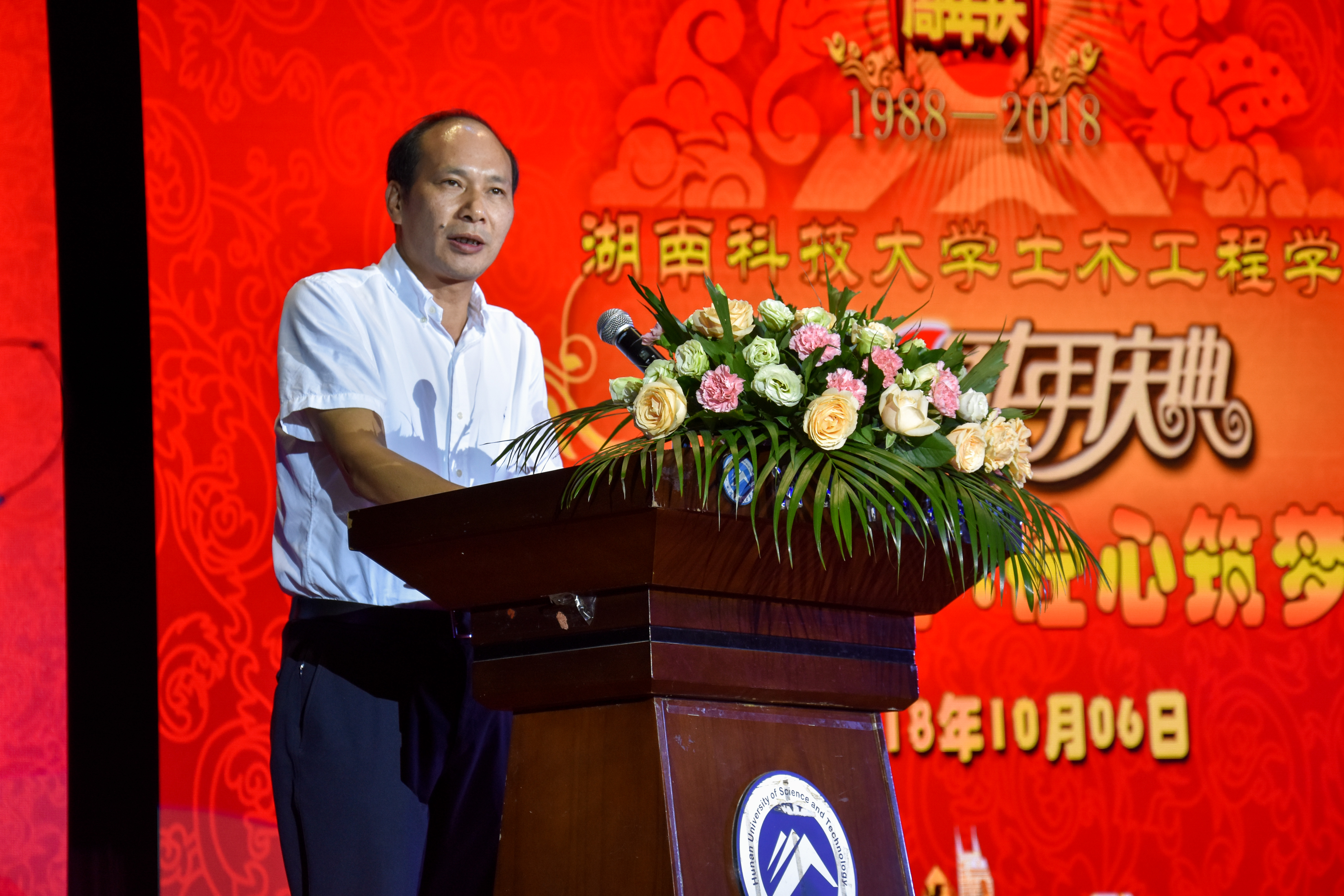 而除了各种精彩节目,土木学院还邀请了两位在土木学院奉献多年的优秀教师为在场的师生传授经验、传递精神。钟新谷教授说:“我从1988年来到科大任职,到今年刚好30年。虽然我临近60,但依旧希望能为学院付出自己的一份力。30年来,我秉持着温柔与严厉并济的教学理念,重视培养学生的交流以及创新能力,看着学生们一届届走出入社会,我很欣慰。衷心祝福学院贤才辈出、辉煌鼎盛!”皇晓东老师亦陪伴着土木学院走过了30年的风风雨雨:“刚开始的土木学院只有两个专业两个班60多人,发展到现在,我们不仅学生多了,还拥有了硕士点,通过了工程教育专业认证。希望我们学院能够越办越好,越来越辉煌。”