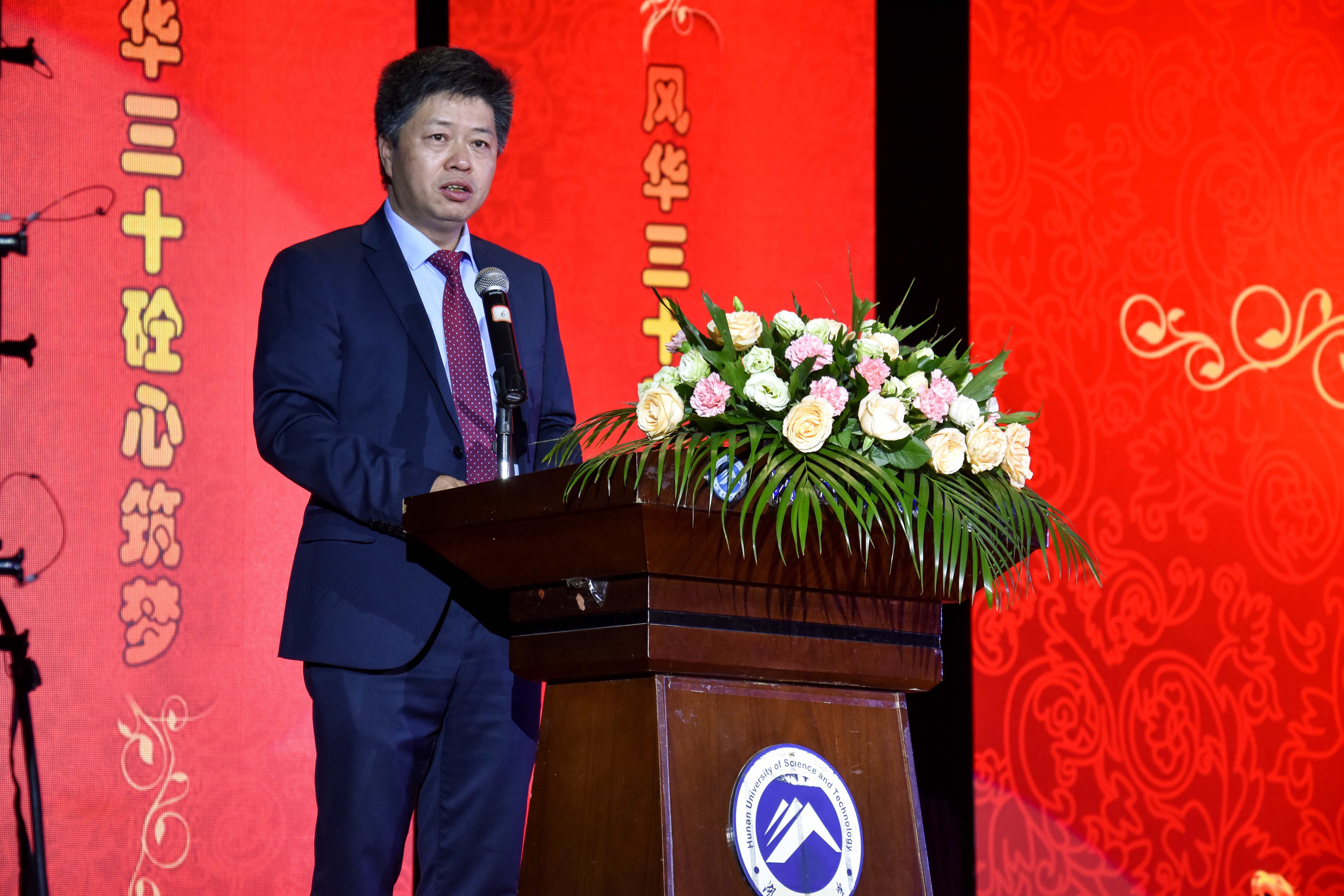 在庄严的国歌声中,土木学院30年院庆庆典正式拉开帷幕。庆典仪式由院党委书记陈秋南主持。仪式第一项,陈秋南书记对到场嘉宾进行介绍并表示感谢。仪式第二项,院长祝明桥进行发言,他首先向关心学院发展的各界人士致以感谢,紧接着以学院及专业的演变与发展为主线,详细介绍了土木学院30年来,在学校的培养下,依托学校的综合性优势屡创佳绩。“未来我们要在习近平新时代中国特色社会主义思想的指导下,不负使命,砥砺前行,再创辉煌!”
