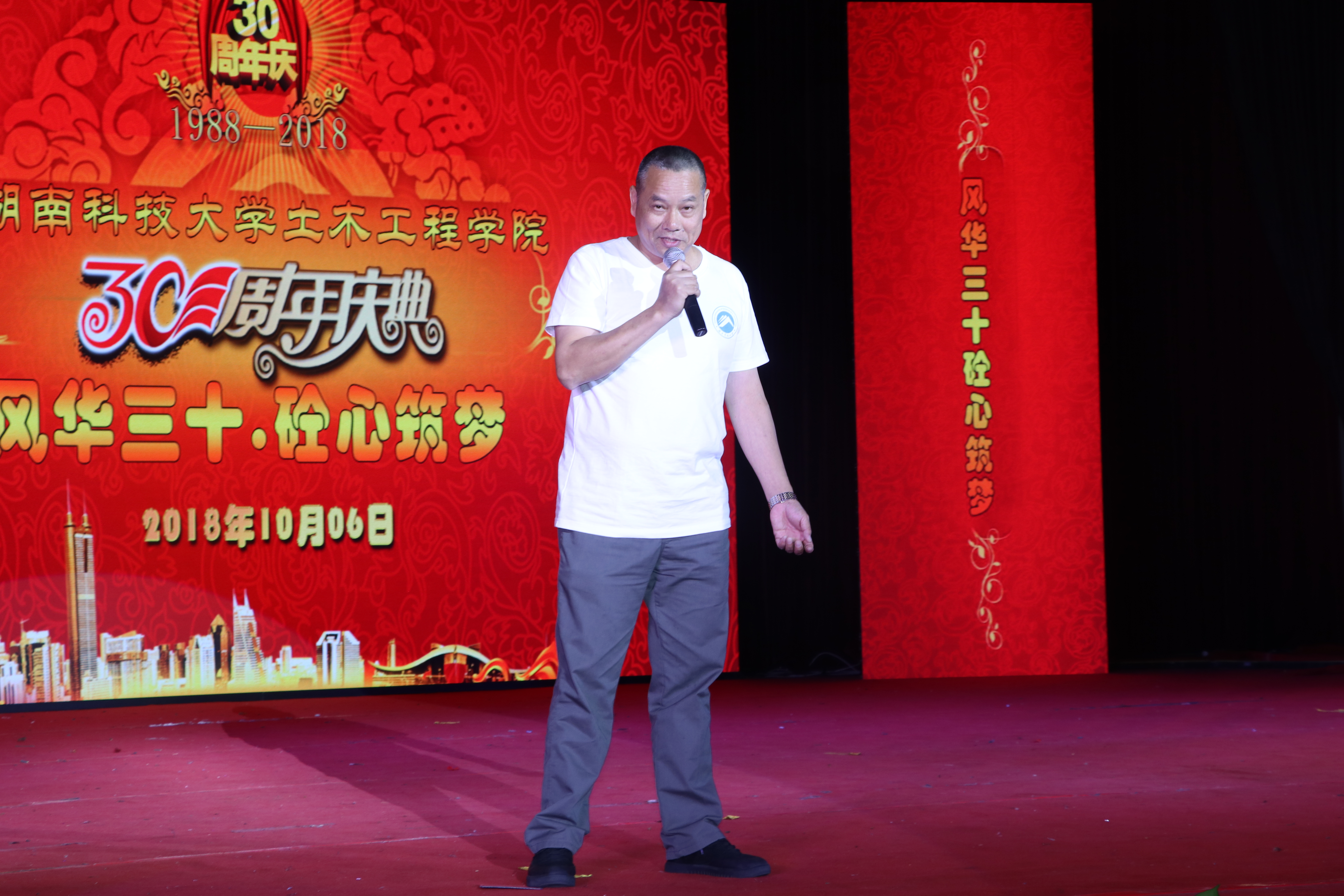 而除了各种精彩节目,土木学院还邀请了两位在土木学院奉献多年的优秀教师为在场的师生传授经验、传递精神。钟新谷教授说:“我从1988年来到科大任职,到今年刚好30年。虽然我临近60,但依旧希望能为学院付出自己的一份力。30年来,我秉持着温柔与严厉并济的教学理念,重视培养学生的交流以及创新能力,看着学生们一届届走出入社会,我很欣慰。衷心祝福学院贤才辈出、辉煌鼎盛!”皇晓东老师亦陪伴着土木学院走过了30年的风风雨雨:“刚开始的土木学院只有两个专业两个班60多人,发展到现在,我们不仅学生多了,还拥有了硕士点,通过了工程教育专业认证。希望我们学院能够越办越好,越来越辉煌。”
