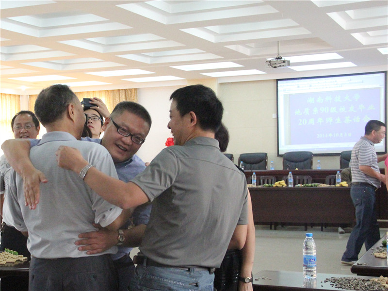 毕业二十年了。当年的大学毕业生已经变成了中年人,而那时的老师则已经白发苍苍。当见到当年的老师时,同学们都迫不及待地冲上去握住老师的手,给他一个大大的拥抱。首先,院长钟新谷向学生们简要地介绍了湖南科技大学和米乐mile官方网站这二十年的进步与发展,并对94届学子的到来表示热烈的欢迎。94届的煤田二班的班主任陈春平送来了对同学的问候。之后,各位同学向老师“报告”自己这几年的经历,现在的状况。94届的同学们都表示自己现在的生活都要归功于母校的栽培、老师的教诲。毕业二十年了,他们依旧想念母校,思念老师和同学。院书记祝明乔,老师皇晓东,94届系主任王元清等老师也对同学们的成长表示了肯定,同时,也告诫同学们在如今的生活中不要因为忙于工作而忽视了锻炼身体,保护身体。并对同学的到来表示欢迎。茶话会后,师生合影留念。