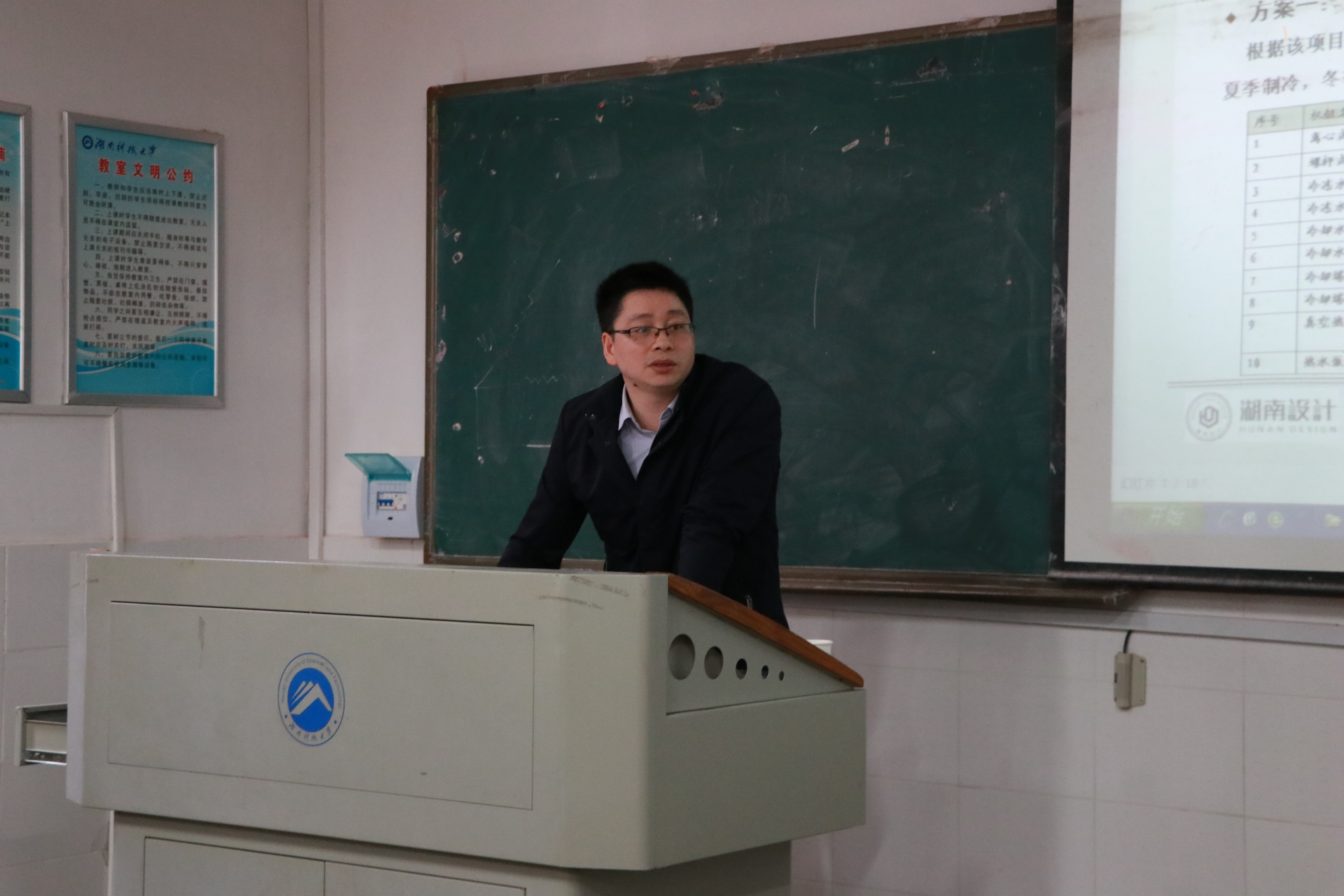 会议伊始,建环专业系主任李永存对毕业设计环节管理实施进行补充说明,力求有质量地完成毕业设计。因此特别邀请我院优秀毕业生段国权通过对中央空调冷、热分析报告编制及运用,对毕业生的毕业设计中最重要的部分进行示范。此次报告中,段国权就冷热源分析报告的编制原理、冷热源的主要形式、冷热源分析报告的编制、医院冷热源实例分析等方面进行介绍,并且列举了正在实施的工程项目。随后,与会老师针对报告提出问题,并与主讲人展开讨论。报告结束后,对第17届MDV中央空调设计应用大赛进行宣讲,秉承着“致舒适环境,唯暖通先行”这一宗旨,为行业设计师、工程师、企业等搭建了一个跨界融合及学习交流的创新展示和竞赛平台,邀请全体同学积极参加比赛。