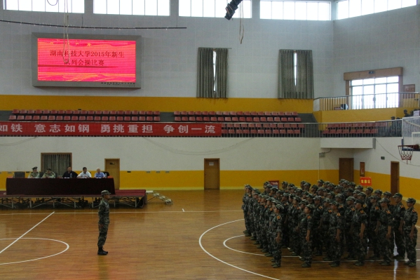 10月6日上午八点,湖南科技大学2015年新生队列会操比赛在北校体育馆内正式举行。学校及各院领导出席了此次比赛,我院代表为由给排水工程1,2班组成的一营二连十排。