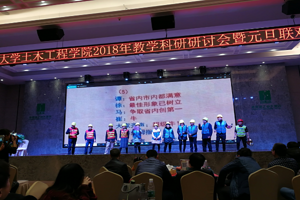 院长祝明桥的致辞和学院领导的大合唱《团结就是力量》拉开了联欢会的序幕。各系部的老师在节目开始前献上了对我院最真挚的祝福与感激,并带来了精彩的演出,展示了我院集全员之智,举全院之力,在2017年的各项工作中所取得的令人满意的成绩。“省内市内都满意,最佳形象已树立,争取省内创第一,牛”实验中心老师带来的三句半展现了我院的凝聚力和战斗力!建工系的家庭对唱洋溢着浓浓的爱的幸福。岩土系和市政系的师生用照片秀的方式唱出了我们是《相亲相爱一家人》。路桥系老师的一首《长大后我就成了你》表达了教师们对自己职业的热爱。工力系表演的土木版《成都》唱出幸福都是大家奋斗出来的,点点滴滴,振奋人心。建环和学工的老师用火热的心舞动出他们对所有人的祝福。最后,由书记陈秋南为各系部颁奖。