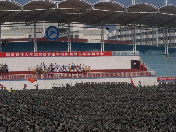2010级新生军训接近尾声,全体师生和军训教官都在等待军训结果的检验。9月17日上午8:30,米乐mile官方网站全体2010级新生在10级辅导员罗芽松的带领下参加了米乐官网在北校田径场举行的2010级军训阅兵暨总结表彰大会。 伴着雄伟的国歌,新生们庄严地注视着国旗冉冉升起。各学院军训队伍也在其教官的带领下整齐排列在田径场。随后,校长刘德顺依次走过军训队伍,参训学员列队整齐,接受检阅,饱满的精神风貌体现了他们在军训期间练就的坚韧气魄。十余日辛劳,只在此一阅, 士兵们 充满着壮志与豪情,意气风发, 向右看 一 二 各学院受阅方阵步伐矫健,满身激情,昂首阔步走过主席台,台下各学院口号更是铿锵震耳,伴随着整齐的步伐声萦绕在科大上空。作为第一个出场的队伍,我院方阵队走过主席台昂扬的气魄显现了土木学子自强不息、敢为人先的风采。 本次阅兵标志着新生们为期12天艰苦的军事训练就此结束,大学的第一堂课已经教会他们怎样强劲坚强而有意志地去生活,他们也将开始不一样的大学生活。
