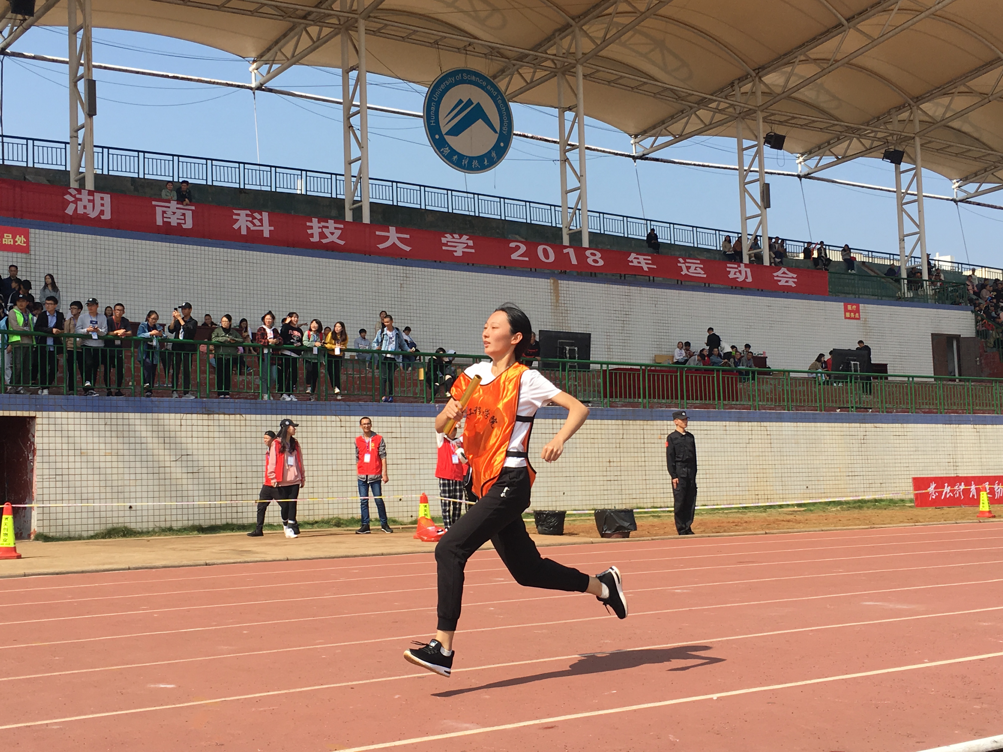 10月26日11:30,米乐官网秋季田径运动会女子4*100米预赛在第二田径场拉开了序幕。万里晴空,观众在呐喊着、欢呼着,热烈的气氛萦绕在田径场上空。